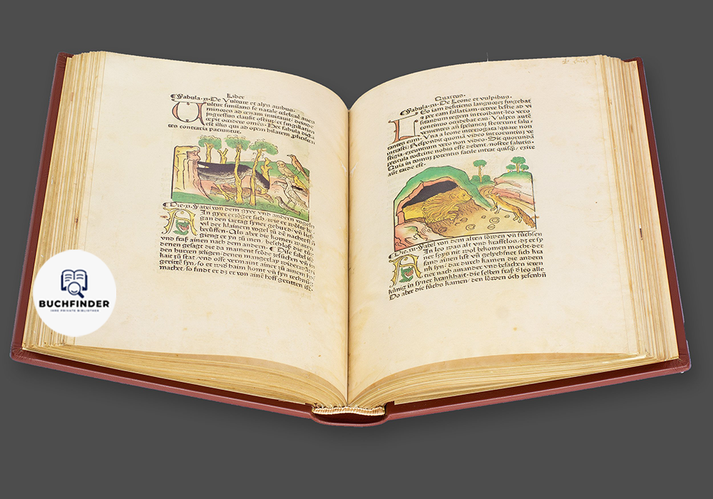 Aesopus - Vita et Fabulae Der sogenannte Ulmer Aesop, der um 1476 von dem Ulmer Humanisten und Übersetzer Heinrich Steinhöwel herausgegeben wurde, ist eine der bedeutendsten Ausgaben der antiken Fabeln Aesops und war mit seinen über 190 meisterlichen kolorierten Holzschnitten stilprägend für nachfolgende Ausgaben und andere Werke. Der frühe Druck aus der Werkstatt Johann Zainers versetzt die unterhaltsamen wie lehrreichen Tierfabeln des im 6. Jahrhunderts v. Chr. tätigen Autors in die Zeit des aufkommenden Humanismus im deutschsprachigen Raum. In den qualitätvollen Holzschnitten des berühmten Meisters des Chorgestühls im Ulmer Münster, Jörg Syrlin d. Ä., werden die antiken Texte den Lesern nahegebracht, die zudem zweisprachig in Latein und Deutsch gedruckt wurden und durch eine kurzweilige Lebensbeschreibung Aesops ergänzt werden. Der (kunst-) historisch bedeutsame Codex wird heute im Museum Otto Schäfer in Schweinfurt verwahrt. Aesopus – Vita et Fabulae Der sogenannte Ulmer Aesop gehört zu den bedeutendsten Ausgaben der Fabeln des antiken Autors Aesop in der Geschichte der Buchkunst. Um 1476 von dem Ulmer Humanisten und Übersetzer Heinrich Steinhöwel herausgegeben, enthält das Buch auf 550 Seiten über 190 kolorierte Holzschnitte. Diese werden Jörg Syrlin d. Ä. zugeschrieben, dem berühmten Meister des Chorgestühls im Ulmer Münster. Gedruckt wurde der Ulmer Aesop, der alle damals bekannten aesopischen Fabeln und eine unterhaltsame Lebensbeschreibung Aesops enthält, in der Ulmer Offizin von Johann Zainer. Die stilprägende Aesop-Ausgabe Noch heute sind die unterhaltsamen und lehrreichen Tierfabeln des Aesop (um 620–560 v.Chr.) jedem ein Begriff. Sie begründeten das literarische Genre der moralisierenden Fabeln. Seit der Antike und das gesamte Mittelalter hindurch erfreuten sich die Geschichten großer Beliebtheit und wurden in zahlreichen Handschriften und Übersetzungen aus dem Griechischen tradiert. Mit der Erfindung des Buchdrucks erlebten die Aesop-Fabeln eine neuerliche Blütezeit. In vielen Ausgaben wurden die moralischen Geschichten mit Holzschnitten illustriert. Die berühmteste unter all diesen Ausgaben ist jedoch der Ulmer Aesop. Der Humanist und Übersetzer Heinrich Steinhöwel (1412–1482/83) gab diese 1476 heraus, mit lateinischem Text und der deutschen Übersetzung. Auf diese Weise waren die Fabeln für jeden verständlich. Steinhöwel versammelte in seiner Aesop-Ausgabe alle damals bekannten Aesop-Fabeln und eine unterhaltsame Lebensbeschreibung Aesops, des Autors der moralischen Geschichten. Außerdem hat Steinhöwel seiner Aesop-Ausgabe einige Erzählungen von Poccio Bracciolini beigefügt, einem berühmten italienischen Humanisten der Renaissance. Dieser Ulmer Aesop, bei Johann Zainer gedruckt, war stilbildend für die nachfolgenden Epochen. In ganz Europa wurde der Ulmer Aesop nachgedruckt, jedoch blieben die beeindruckenden Holzschnitte der Originalausgabe aus Ulm unerreicht. Beeindruckende Illustrationen eines großen Meisters Neben dem Text von Heinrich Steinhöwel beeindruckt am Ulmer Aesop vor allem die künstlerische Gestaltung der Illustrationen. Diese werden Jörg Syrlin d. Ä. (um 1425–1491) zugeschrieben, dem Meister des berühmten Chorgestühls im Ulmer Münster. Über 190 Holzschnitte sind dem Text beigefügt. Die feinen Graphiken sind bunt koloriert. Stilistisch herausragend sind zum einen die Plastizität und Räumlichkeit der Szenerien, zum anderen die Gestaltung der dargestellten Figuren. Sowohl Tiere als auch Menschen werden mit einer aussagekräftigen Mimik und Gestik gezeigt, die den Inhalt der Fabeln wunderschön in Bilder übersetzt. Die vielfältigen Tierarten sind außerdem bemerkenswert naturalistisch dargestellt. Zusätzlich zu den Holzschnitt-Illustrationen ist der Text mit kolorierten Initialen abwechslungsreich gestaltet. Die Fabeln des Aesop, die wie Gleichnisse zu verstehen sind, haben bis heute nichts von ihrer eindrücklichen und unterhaltsamen Art verloren. Wie in der Antike, im Mittelalter und der Renaissance sind die Erzählungen, beispielsweise vom Fuchs und den Trauben oder vom verliebten Löwen, sowohl als Unterhaltungsliteratur als auch als lehrreiche Lektüre ein großer Genuss. In der Ausgabe des berühmten Ulmer Aesop begeistern die moralischen Geschichten gekrönt durch die bunten Holzschnitte Jörg Syrlins.