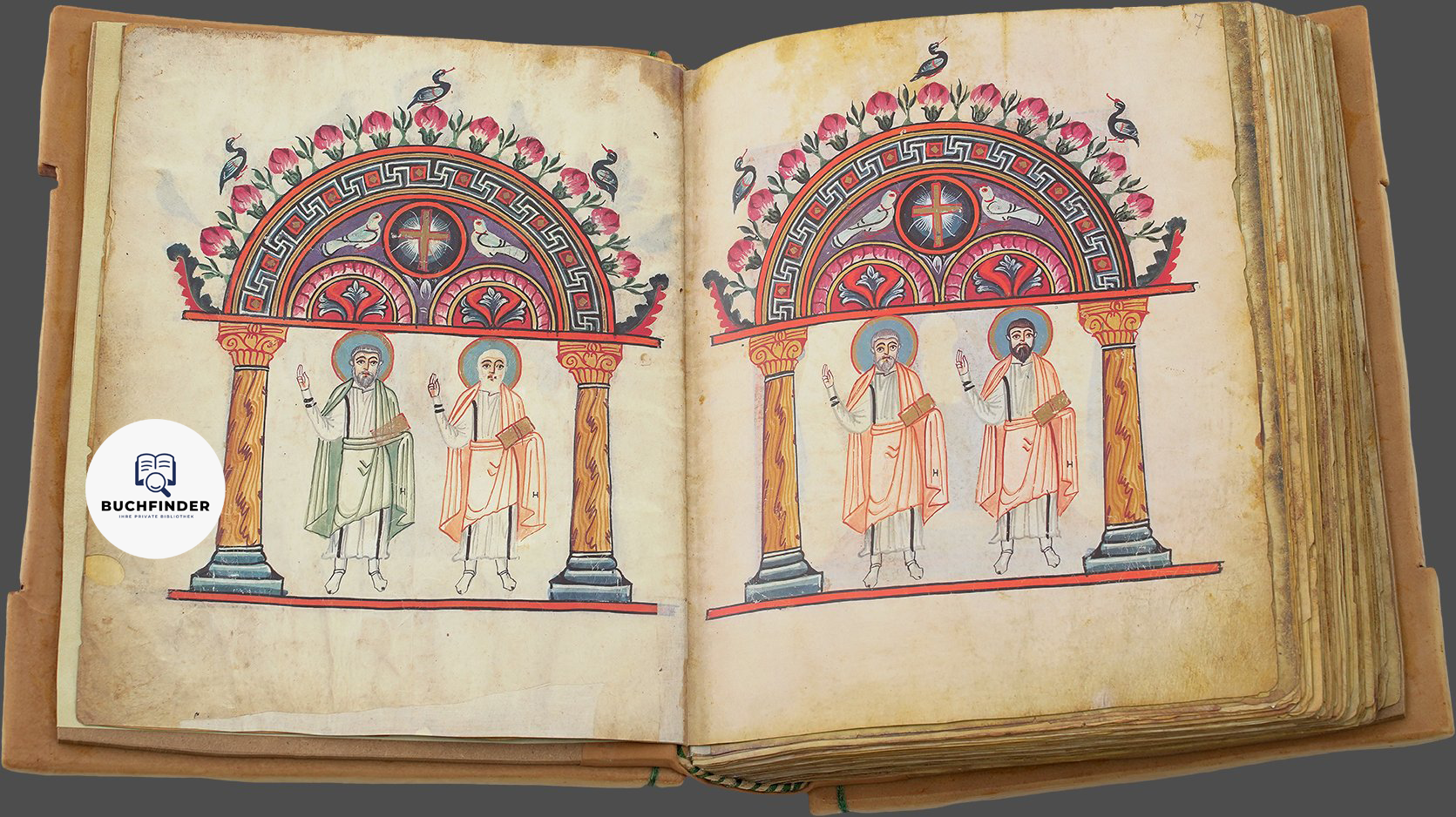 Noch weiter zurück führen uns die 15 ganzseitigen Bilder, die dem biblischen Bericht als illustrierter Vorspann vorangestellt sind. In ihnen spiegelt sich in einer Ausführung des 10. Jh.s jenes Dekorationssystem am reinsten wider, das Eusebius von Caesarea in der 1. Hälfte des 4. Jh.s für die Ausstattung eines Evangeliars entwickelt hatte und das in der Folge für alle Handschriften dieses Typus verbindlich bleiben sollte.