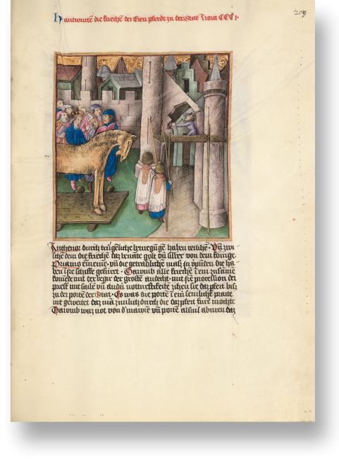 In der Sage um Troja, eines der beliebtesten Stücke der Weltliteratur, geht es um einen Krieg, eine schöne Frau, um Helden und Götter. Sie stammt aus der Feder von Homer, der als Urvater europäischer Dichterkunst gilt. Seine beiden Epen „Ilias“ und „Odyssee“ gehören zu den ältesten Werken abendländischer Literatur. Das Original Die Original Handschrift „ Der Tojanische Krieg“ befindet sich heute mit der Kennzeichnung Cod. 2773 in der Österreichischen Nationalbibliothek und umfasst insgesamt 478 Seiten. Das Faksimile Was diese Faksimile Troja Roman so ausmacht sind die Miniaturen, die durch wunderschöne Bilderzählungen dargestellt werden. Insgesamt enthält das Faksimile Troja Roman 334 Darstellungen, davon 242 Seiten mit 23 karätigem Echtgold. Diese besondere Faksimile ist weltweit mit nur 998 Exemplare limitiert aufgelegt worden. Das Faksimile wurde vom Verlag mit einem aufwändig gestalteten spätgotischen Einband ausgestattet, welches der Verlag entworfen hat,da beim Original der Einband nicht vorhanden ist. Der Einband besteht aus braunem Leder und wurde mit Blindprägung durch Streicheisen und Einzelstempel sowie durch Kolorierung der Stempelmotive gestaltet. Das Faksimile befindet sich in einer Kassette mit Acryldeckel. Dieser bietet einen besonderen Schutz.